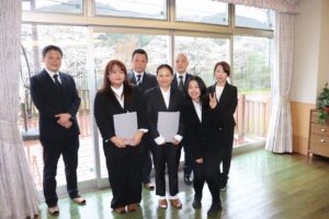 あいにくの空模様ではありましたが、新入職員さんに笑顔が見られる場面もたくさんあり、あたたかな雰囲気の入社式となりました。