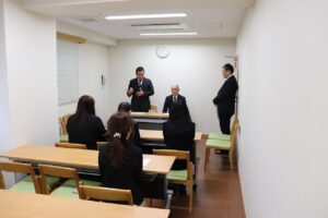 はじめに、社長および両施設長から歓迎の言葉があり、新入職員3名は真剣な表情で聞き入っておりました。